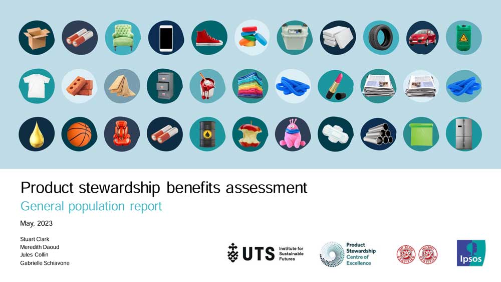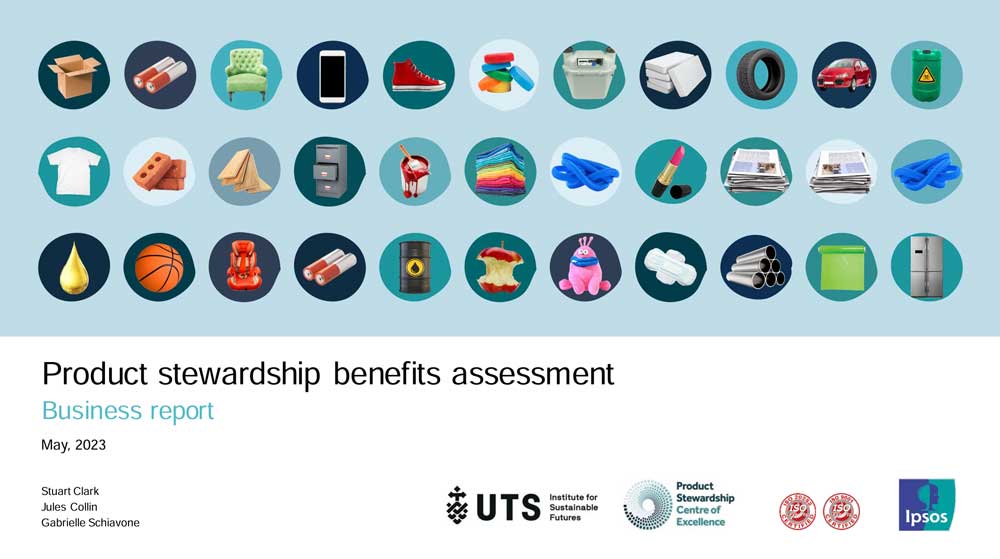 This report is part of a larger project conducted by the UTS Institute for Sustainable Futures, along with the Product Stewardship Centre of Excellence. The objective of this project are to evaluate of the benefits and effectiveness of product stewardship and extended producer responsibility (EPR) activities in Australia.