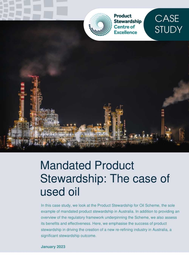 In this case study, we look at the Product Stewardship for Oil Scheme, the sole example of mandated product stewardship in Australia. In addition to providing an overview of the regulatory framework underpinning the Scheme, we also assess its benefits and effectiveness. Here, we emphasise the success of product stewardship in driving the creation of a new re-refining industry in Australia, a significant stewardship outcome.